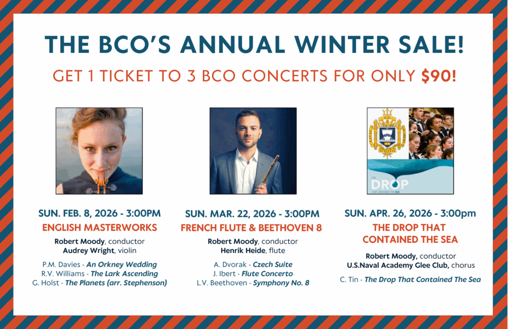Robert Moody’s second season as BCO’s Music Director showcases his talent, personality and passion for the orchestra, inspiring audiences with memorable performances of timeless classical music.